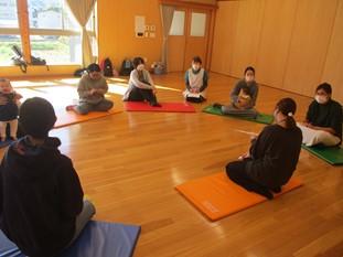 軽いストレッチや瞑想を行います。