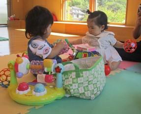 地域子育て支援センターでの普段の遊びは、1階で玩具等を出して遊びますが、月1回、2階で、1階のプレイルームにない遊具を使って思いっきり身体を動かして遊びます。