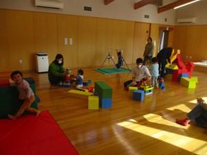 地域子育て支援センターでの普段の遊びは、1階で玩具等を出して遊びますが、月1回、2階で、1階のプレイルームにない遊具を使って思いっきり身体を動かして遊びます。