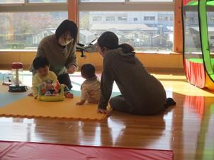 地域子育て支援センターでの普段の遊びは、1階で玩具等を出して遊びますが、月1回、2階で、1階のプレイルームにない遊具を使って思いっきり身体を動かして遊びます。